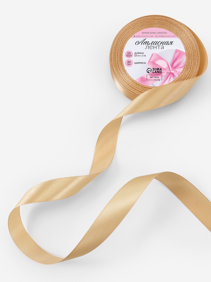 Лента атласная, 20 мм × 23 ± 1 м, цвет шампань №123