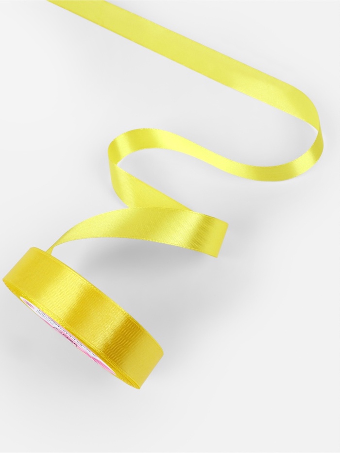 Яркая жёлтая атласная лента добавит праздничного настроения в упаковку подарков, декор интерьера или handmade-проекты. Гладкий полиэстер с мягким блеском легко режется, не осыпается и держит форму — идеально для бантов, обвязки букетов или декоративных акцентов.