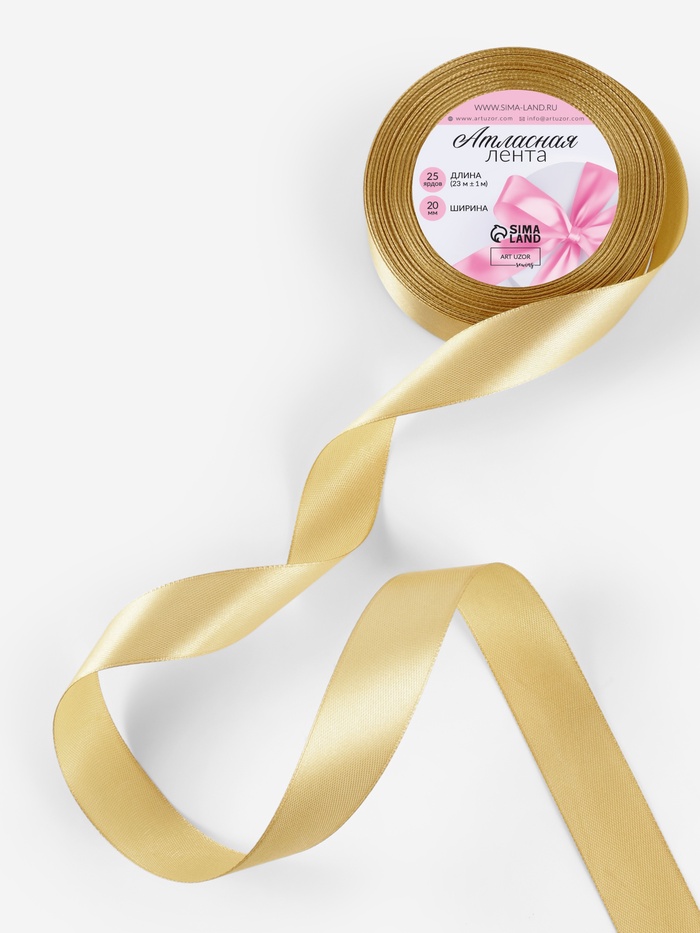 Лента атласная, 25 мм × 23 ± 1 м, цвет золотой №204