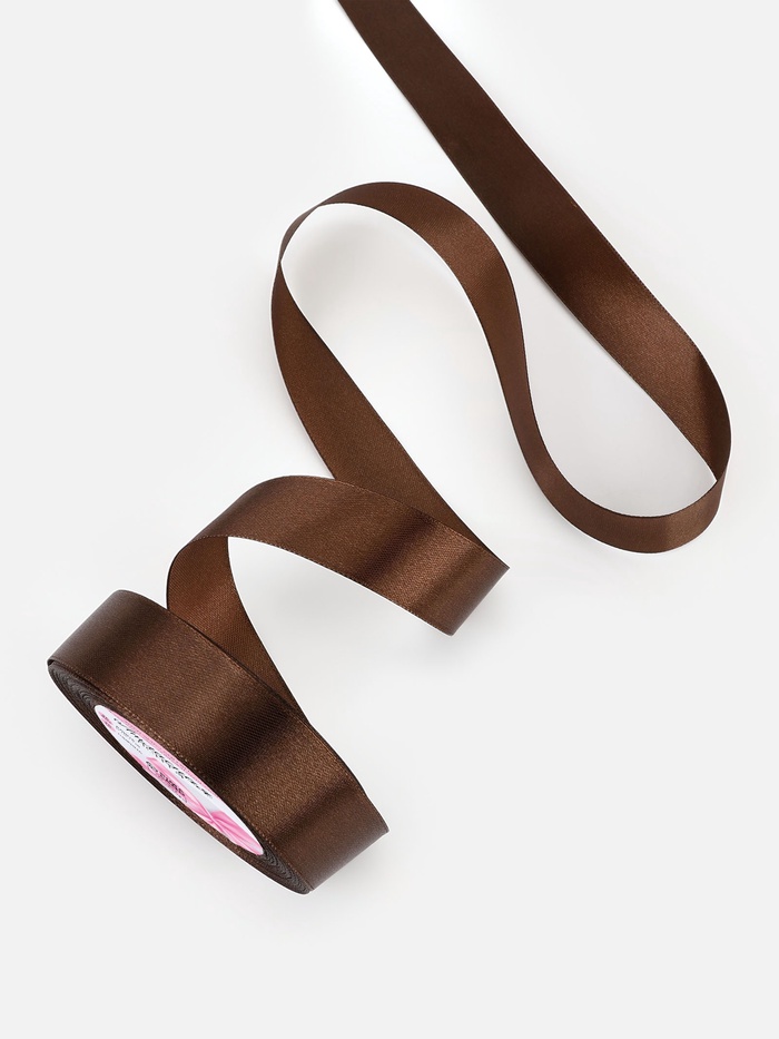 С этой ленточкой открываются безграничные возможности для творчества. Подобно шелковистому коричневому шлейфу, она может стать акцентом в оформлении подарков или изысканным элементом декора. Этот универсальный аксессуар придаст изюминку любому изделию, будь то праздничная упаковка или отделка одежды.