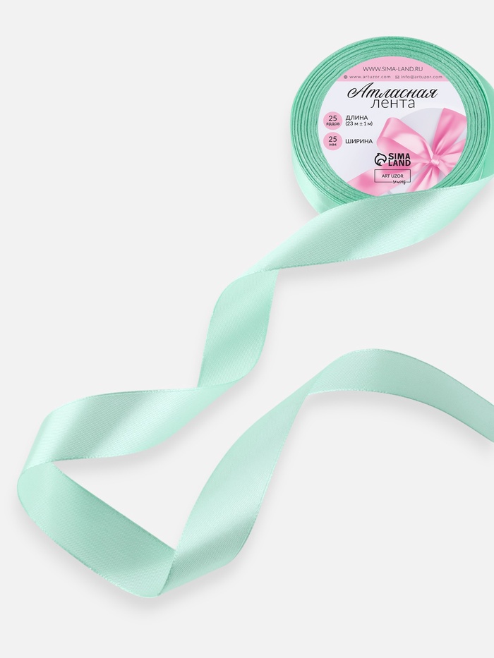 Лента атласная, 25 мм, 23±1 м, нежно-мятная №181