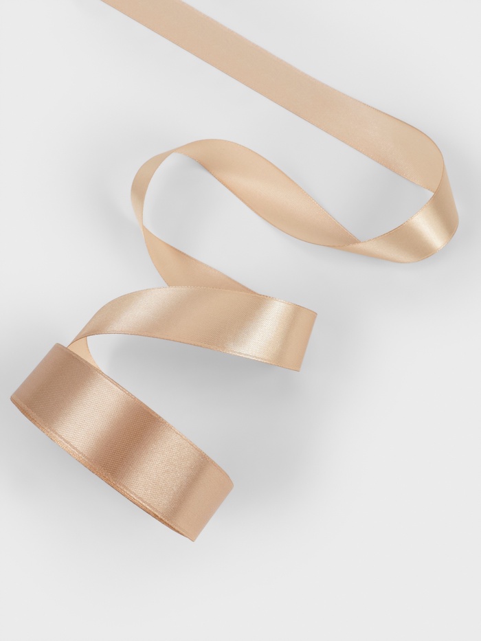 Наш атласный декор станет вашим надежным партнёром в создании элегантных и утончённых штрихов для любого проекта. Светло-бежевый оттенок ленты отлично сочетается с разнообразными палитрами, создавая атмосферу уюта и нежности.