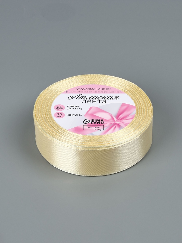 Ищете идеальное декоративное дополнение для ваших проектов? Светло-бежевая атласная лента шириной 25 мм и длиной 23 метра обязательно придаст изысканный акцент любому вашему творению. Сделанная из прочного полиэстера, она объединяет в себе блеск и прочность — безупречный выбор для разнообразных декоративных задумок.