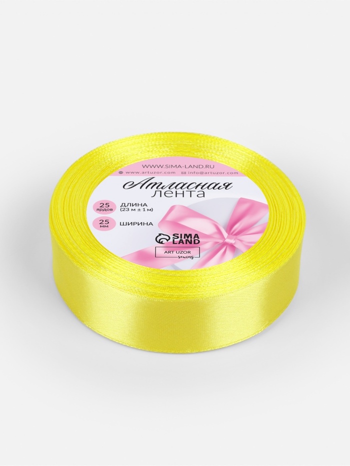 Атласная лента шириной 25 мм и длиной 23 метра выполнена в ярком жёлтом цвете. Это идеальный выбор для тех, кто стремится добавить изысканности и элегантности в оформление подарков или декор интерьера. Ее гладкая текстура и яркость делают её незаменимой в создании праздничной атмосферы.