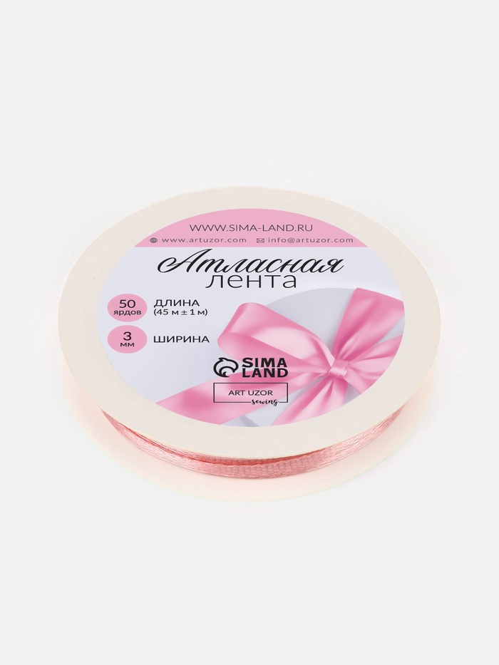 Лента атласная, 3 мм, 45±1 м, жемчужно-розовая №135