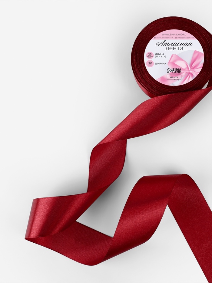 Лента атласная, 40 мм × 23 ± 1 м, цвет бордовый №48
