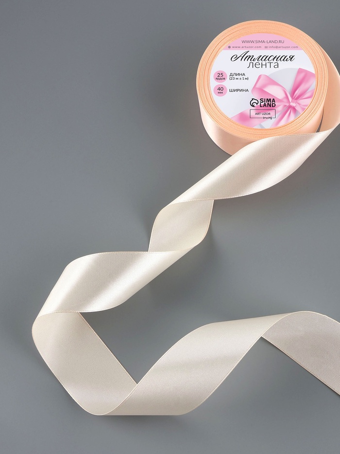 Атласная лента гладкая и приятная на ощупь. Используйте её для отделки изделий, украшения подарков, в свадебном оформлении, а также в скрапбукинге и канзаши.
