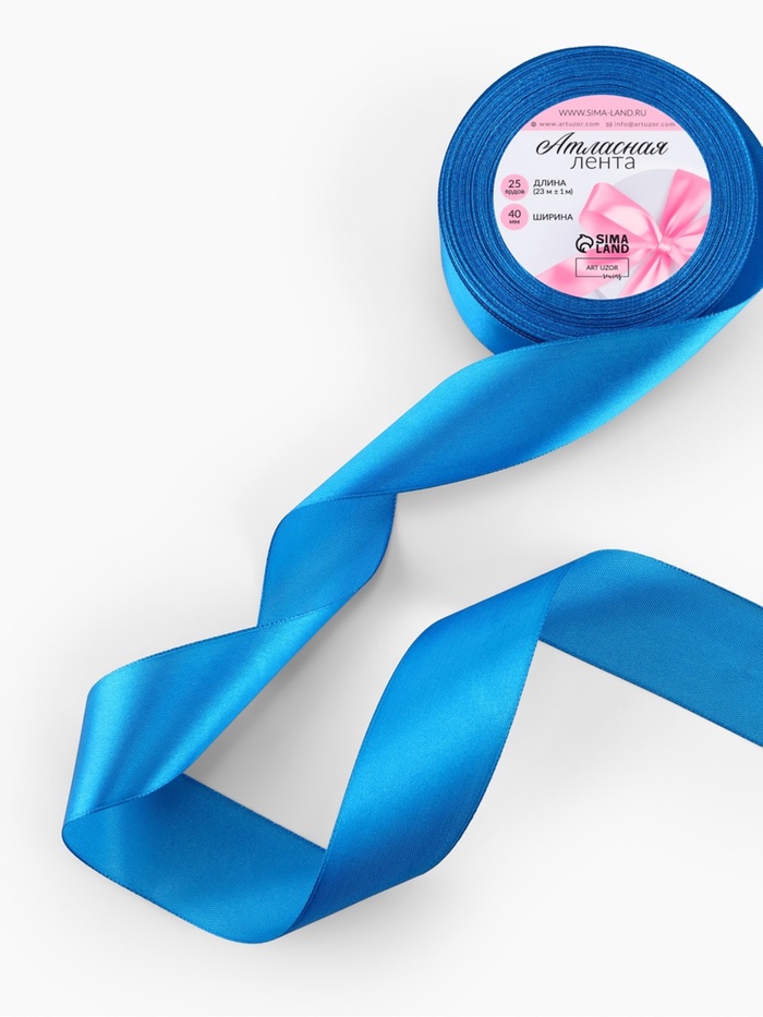 Лента атласная, 40 мм, 23±1 м, лазурная