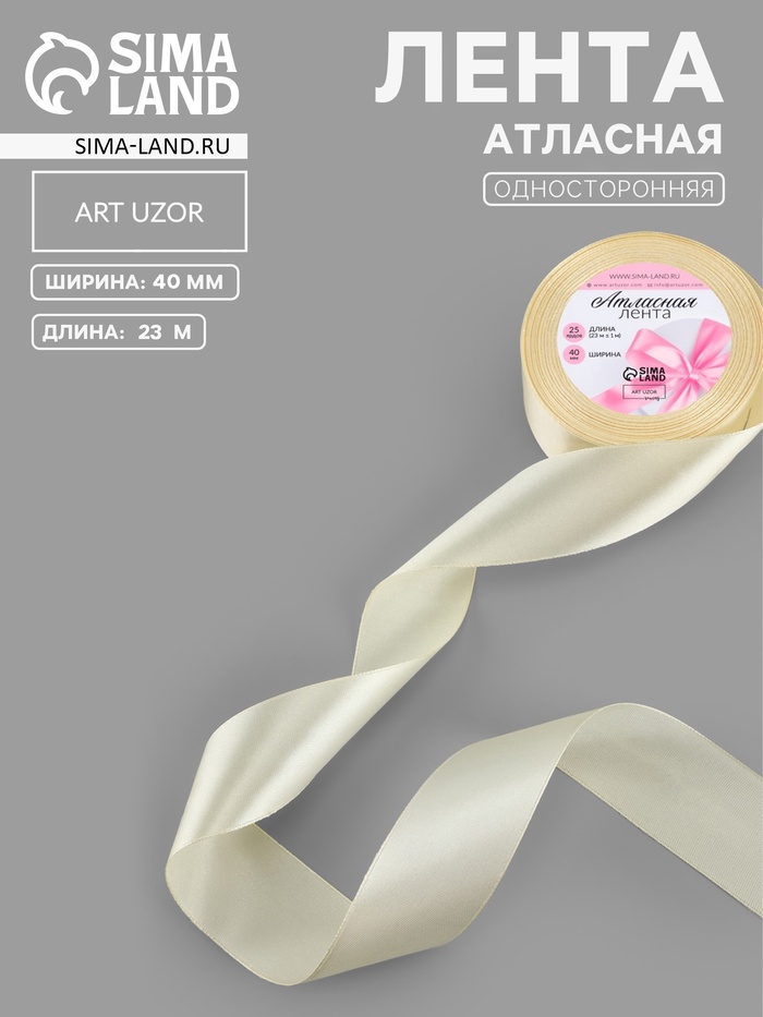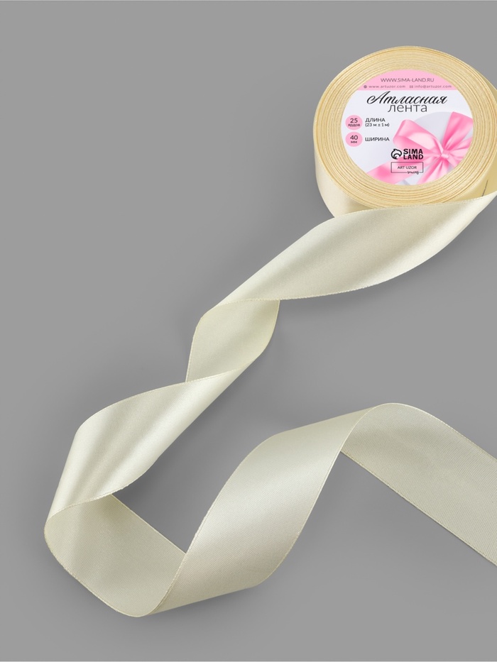 Лента атласная, 40 мм, 23±1 м, сливочная