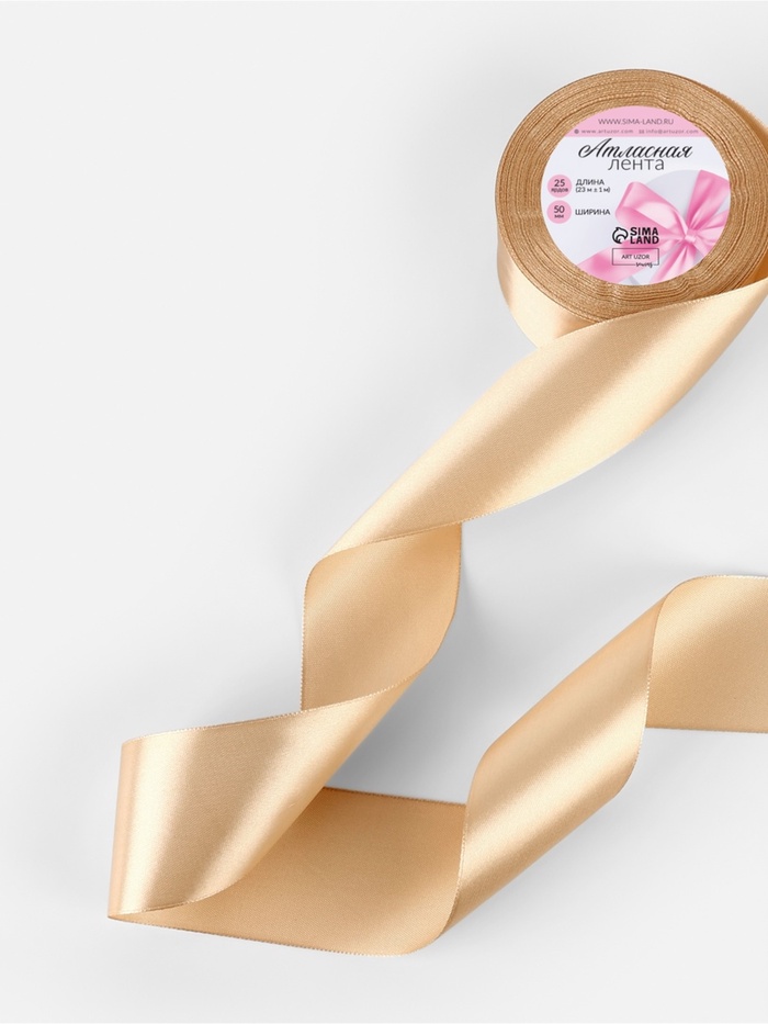 Лента атласная, 50 мм, 23±1 м, бежевая №267