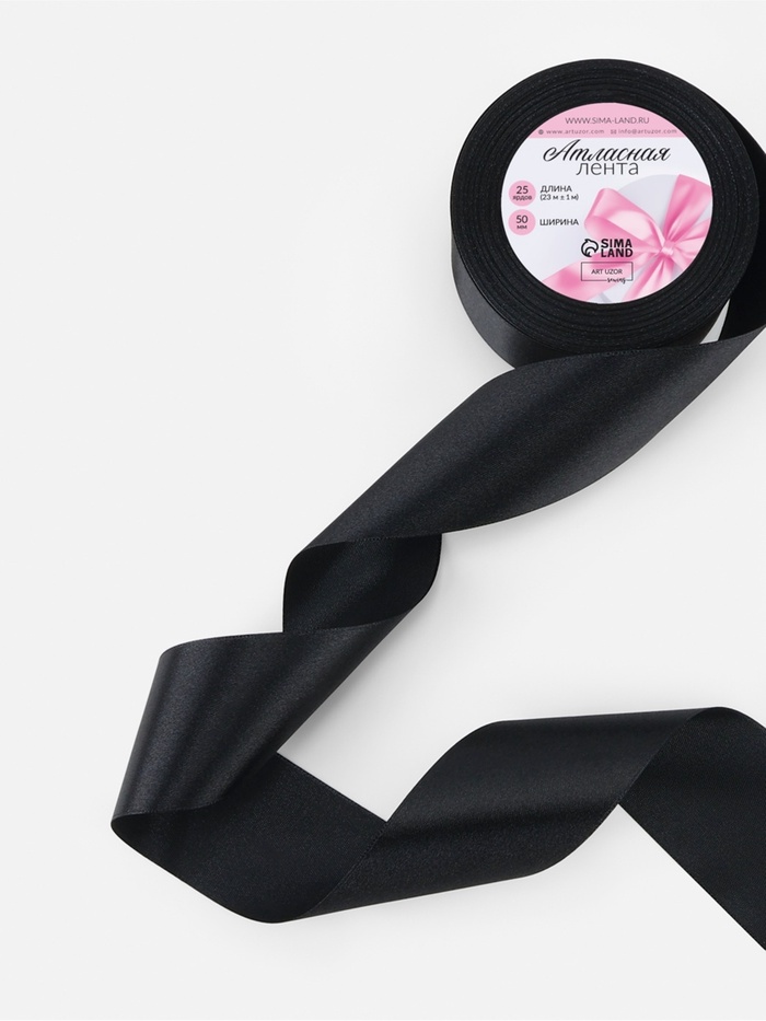 Лента атласная, 50 мм, 23±1 м, чёрная №39
