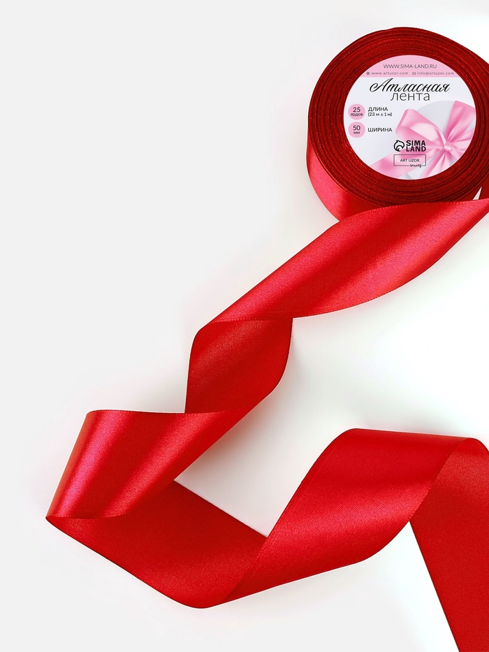 Лента атласная, 50 мм, 23±1 м, красная №26