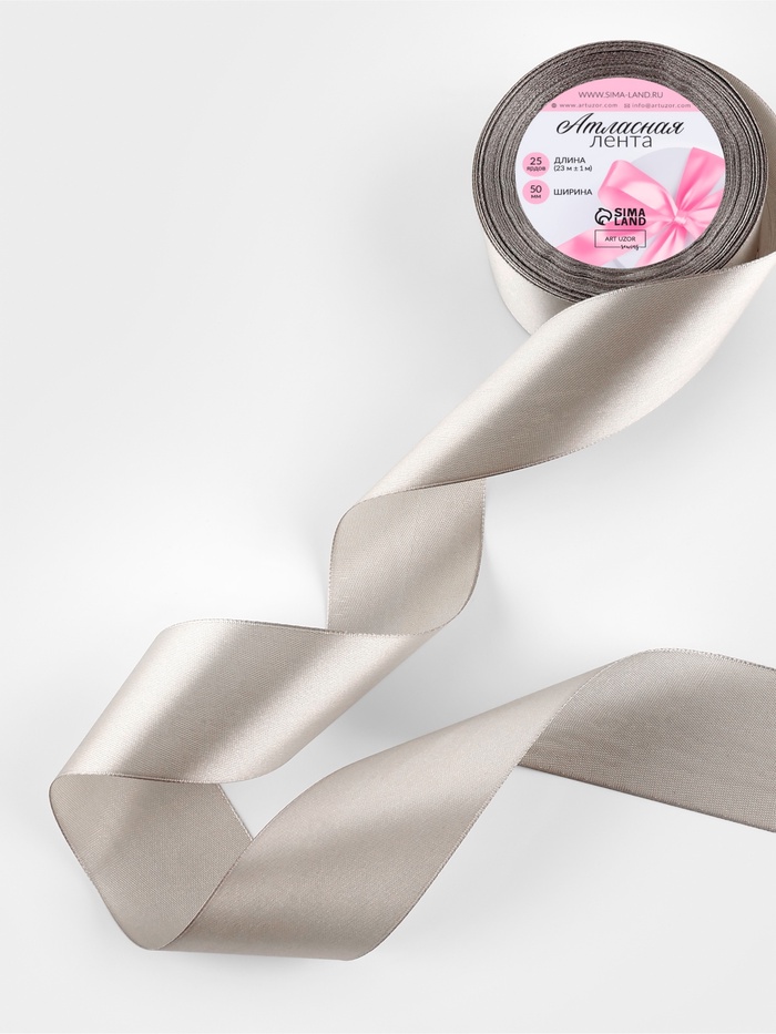 Лента атласная, 50 мм, 23±1 м, светло-серая