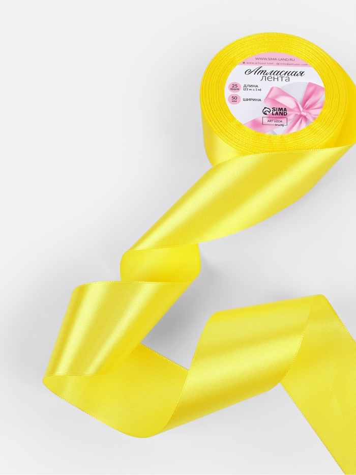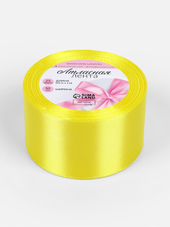 Лента атласная, 50 мм, 23±1 м, жёлтая №15