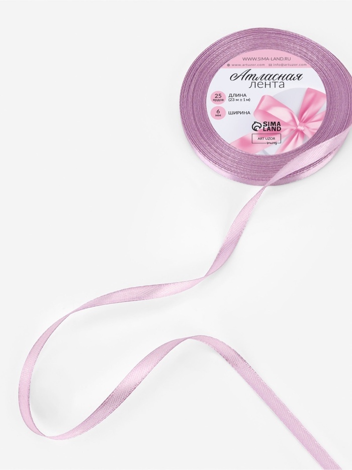 Лента атласная, 6 мм, 23±1 м, лавандовая №141