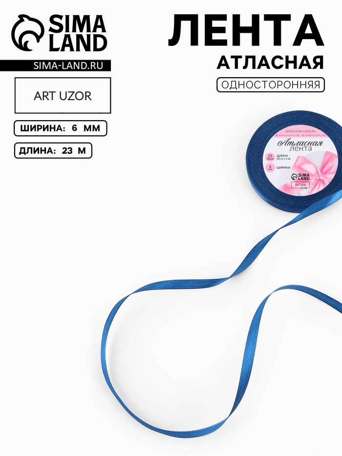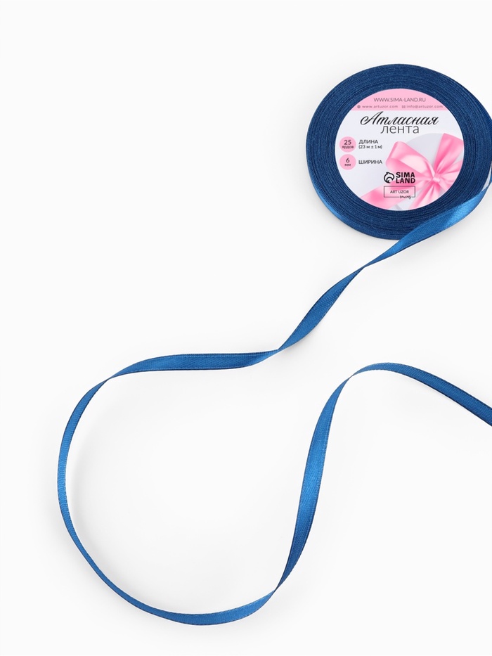 Лента атласная, 6 мм, 23±1 м, лазурно-синяя