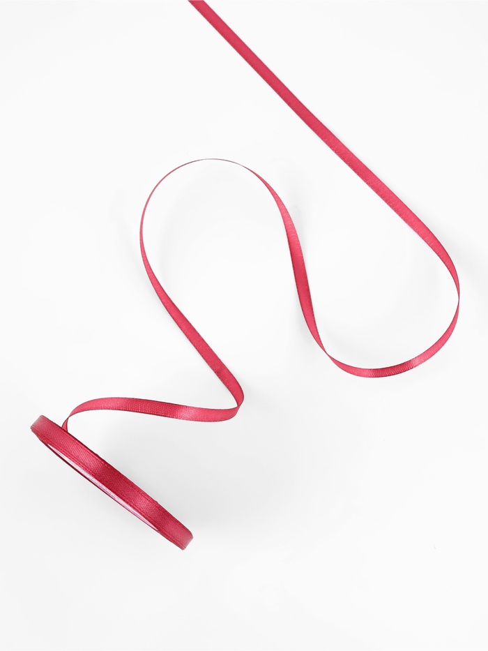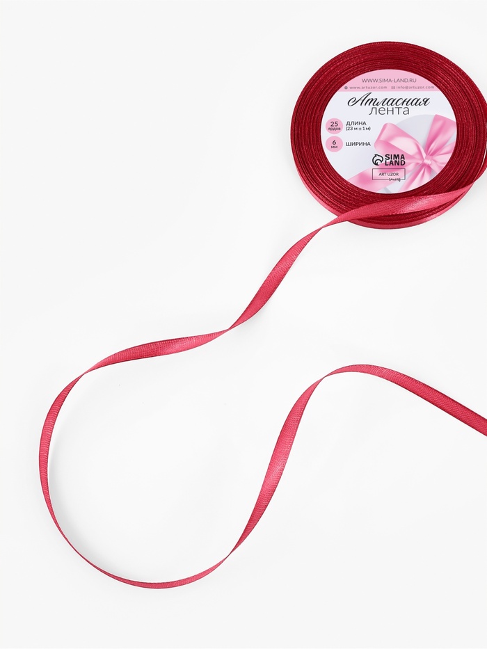 Лента атласная, 6 мм, 23±1 м, малиново-красная №134