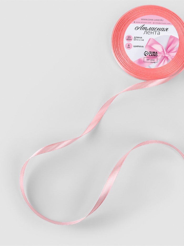 Лента атласная, 6 мм, 23±1 м, розовая №66