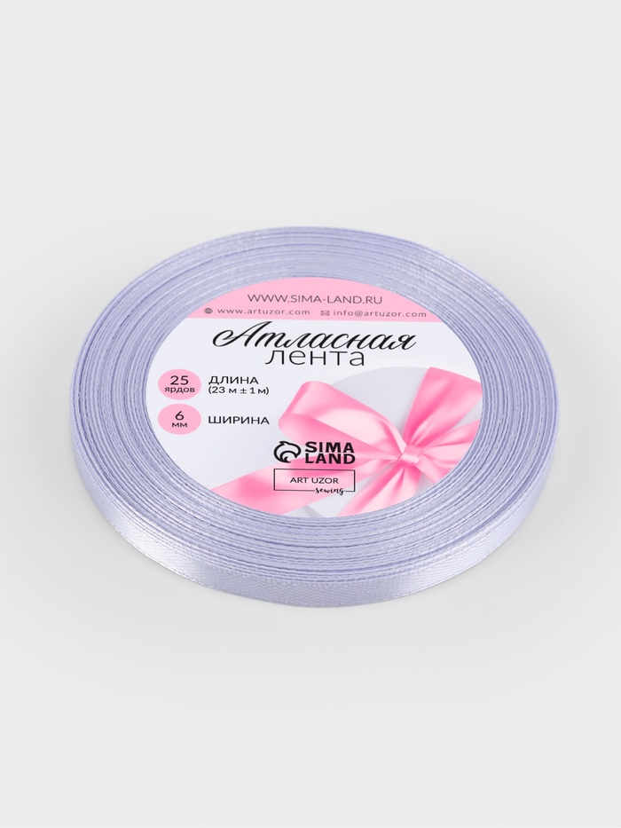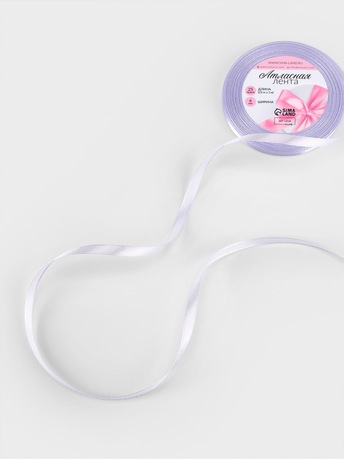 Лента атласная, 6 мм, 23±1 м, светло-сиреневая
