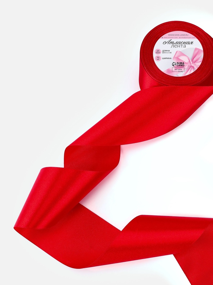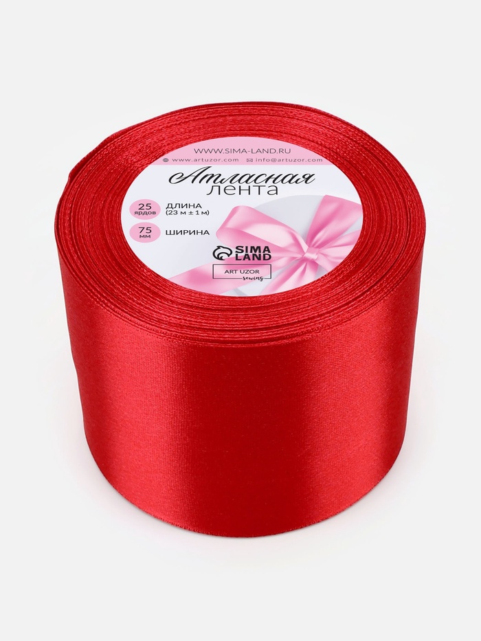 Лента атласная, 75 мм, 23±1 м, красная №26