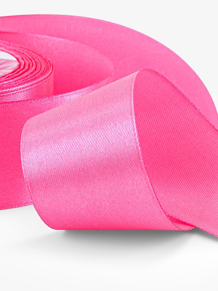 Розовая атласная лента востребована в флористике, скрапбукинге и оформлении фотозон. Её используют для бантов, украшения букетов, декора коробок и текстильных изделий. Гладкая фактура с мягким блеском добавляет работе завершённость — как аккуратная рамка подчёркивает картину. Материал удобно формировать в складки и узлы, он сохраняет опрятный вид в готовых изделиях.