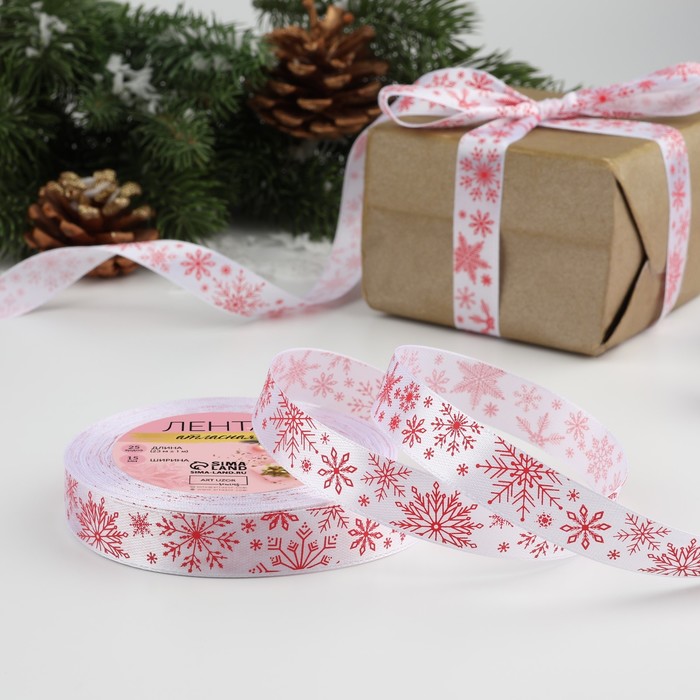 Новогодняя лента является универсальным помощником при изготовлении рукоделий, украшении интерьера, упаковке подарков и другого.