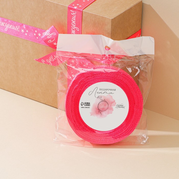 Лента атласная, подарочная упаковка, «С днём рождения», розовая, 2 см х 22.5 м