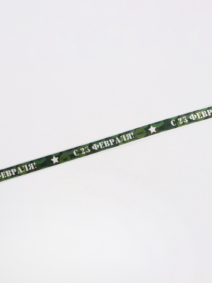Лента атласная «С 23 Февраля!», 2.5 см × 22.5 (± 1) м, зелёная