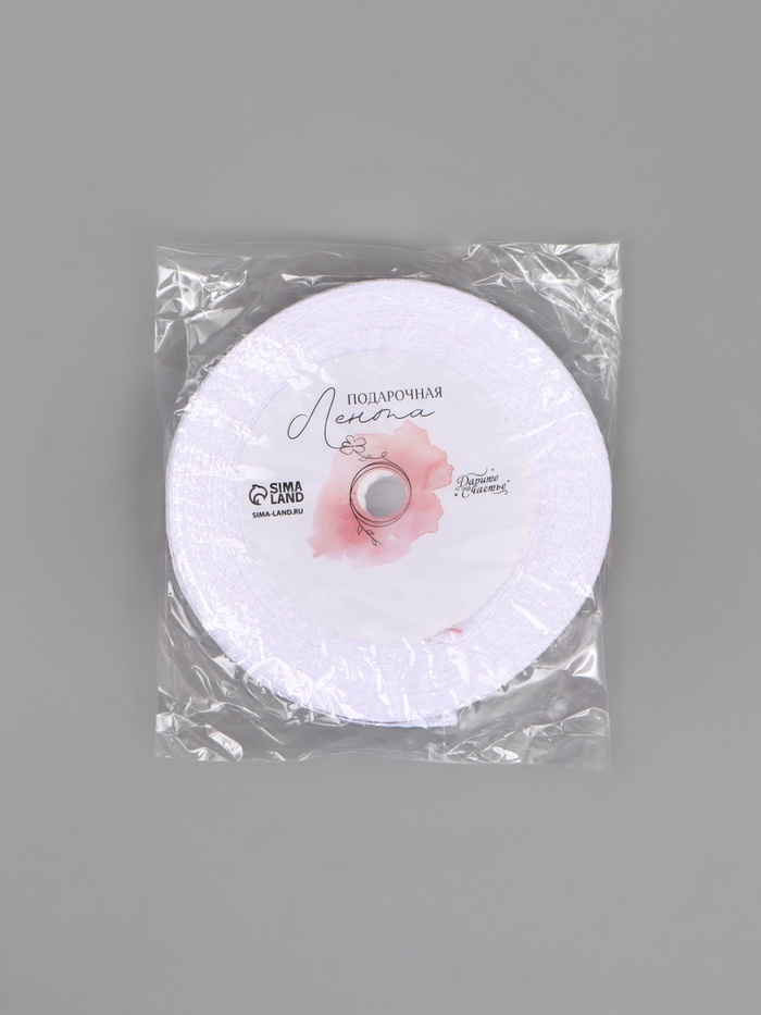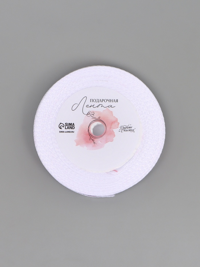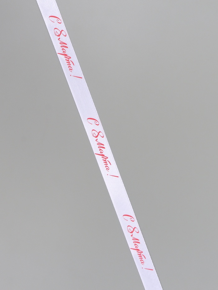 Лента атласная «С 8 Марта», 15 мм, 23±1 м, белая, розовая №001