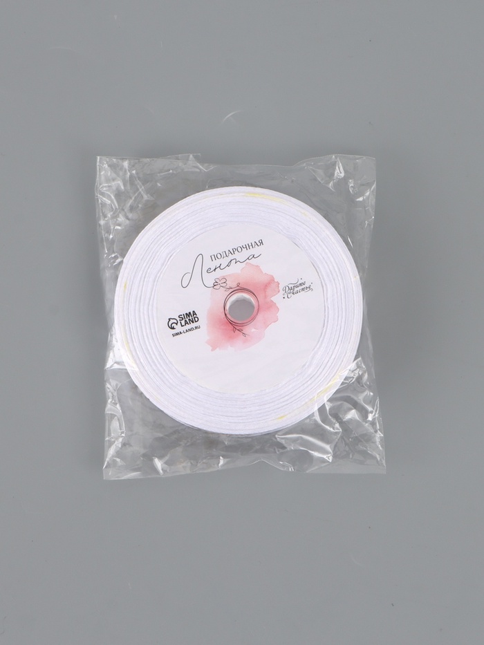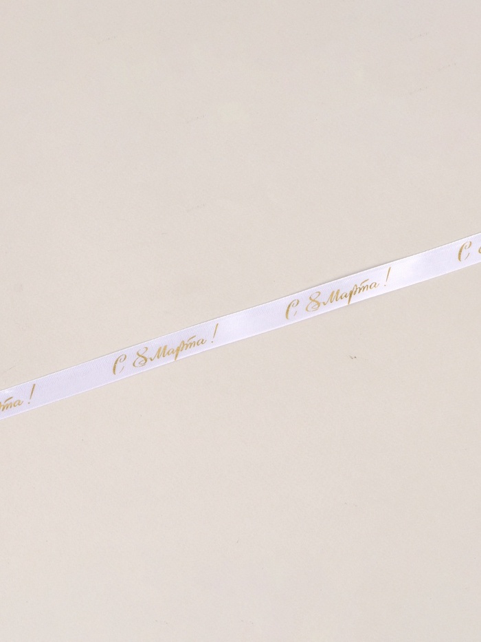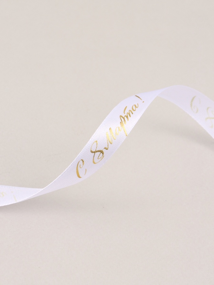 Лента атласная «С 8 Марта», 15 мм, 23±1 м, белая, золотая №001
