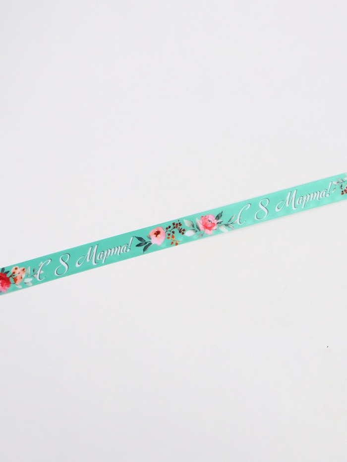 Лента атласная «С 8 Марта!», 25 мм, 23±1 м, зелёная
