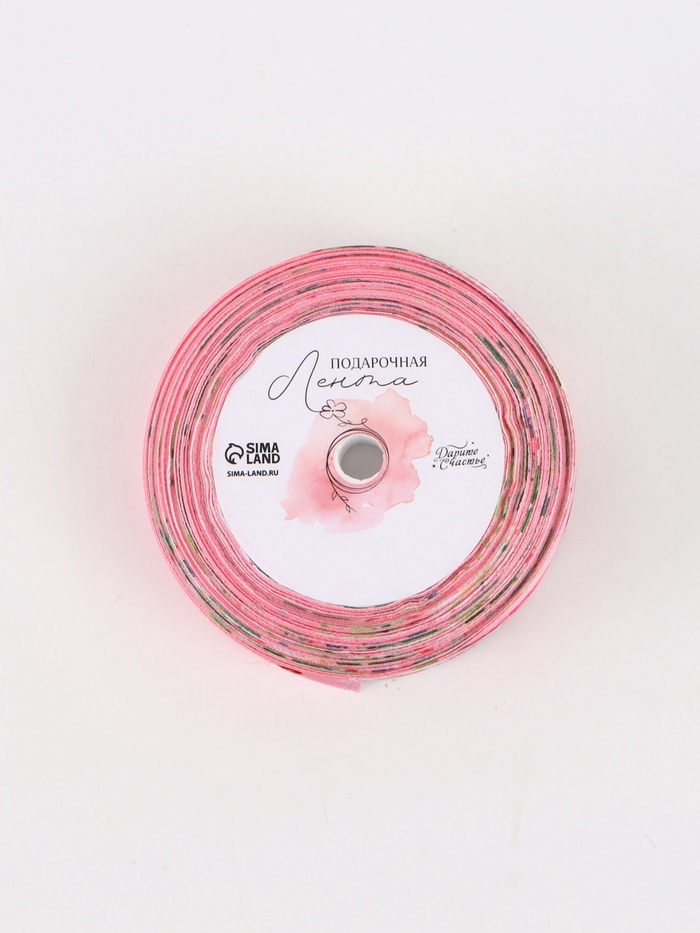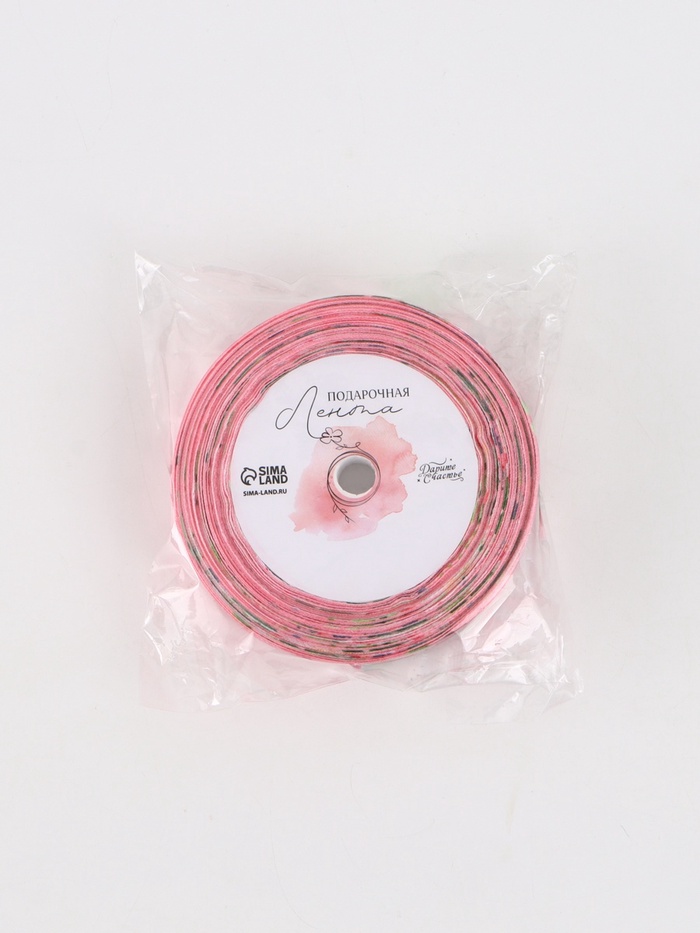 Лента атласная «С праздником весны!», 2.5 см × 22.5 (± 1) м, розовая