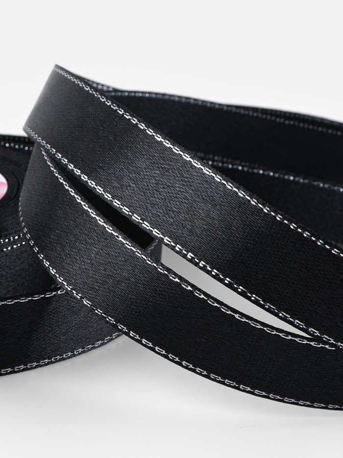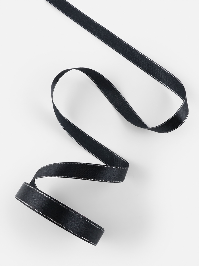 Наша сатиновая лента с серебристым блеском — это универсальный акцент для ваших творческих проектов. В классическом чёрном цвете, она привнесёт стиль и элегантность в упаковку подарков, шитьё одежды или украшение интерьера. Независимо от задачи, эта лента добавит роскошного оттенка благодаря блестящим металлическим нитям.
