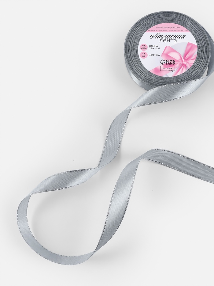 Лента атласная, с серебряным люрексом, 15 мм, 23±1 м, серая №59
