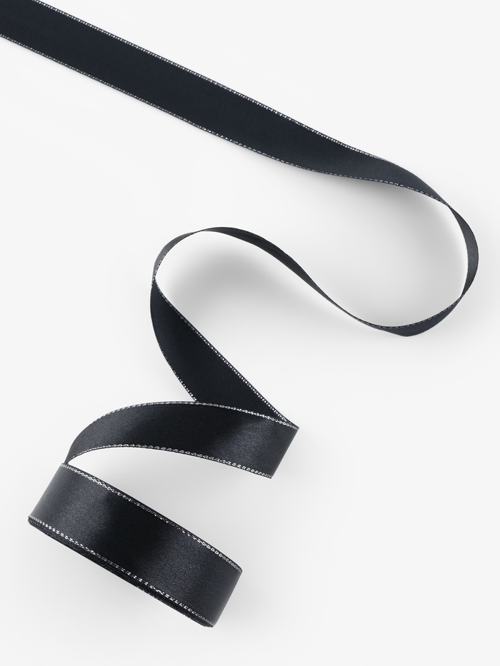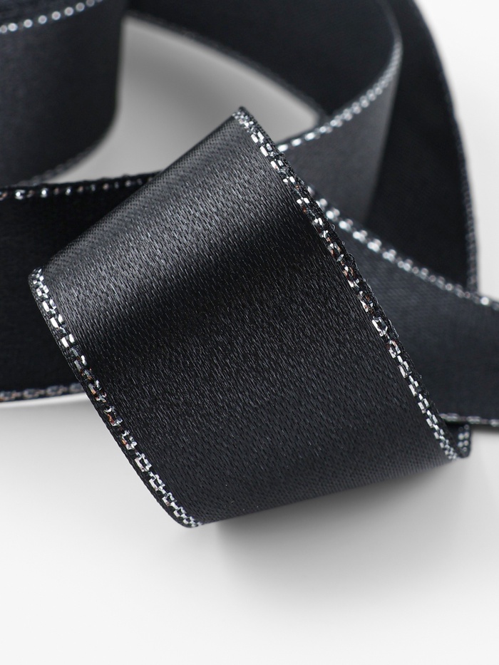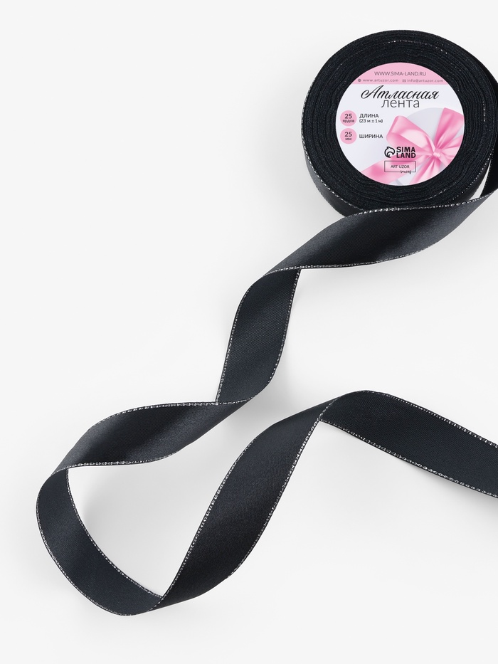 Лента атласная, с серебряным люрексом, 25 мм, 23±1 м, чёрная №39