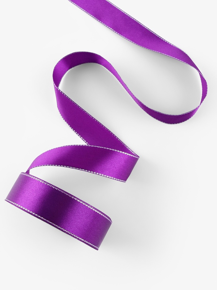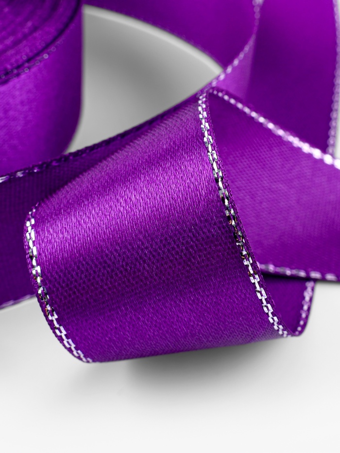 Лента атласная, с серебряным люрексом, 25 мм, 23±1 м, фиолетовая №35