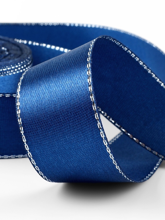 Эта Синяя лента с серебристым люрексом станет настоящим открытием для любителей изысканных деталей в рукоделии. Атласная полоска шириной 25 мм и длиной 23 метра добавит элегантность к любому проекту. Сам её цвет — это глубокий синий, обогащённый ухищренным блеском серебристых нитей люрекса. Подобная лента идеально подойдёт для оформления подарков, декора или создания аксессуаров, воплотив в жизнь даже самые смелые творческие идеи.
