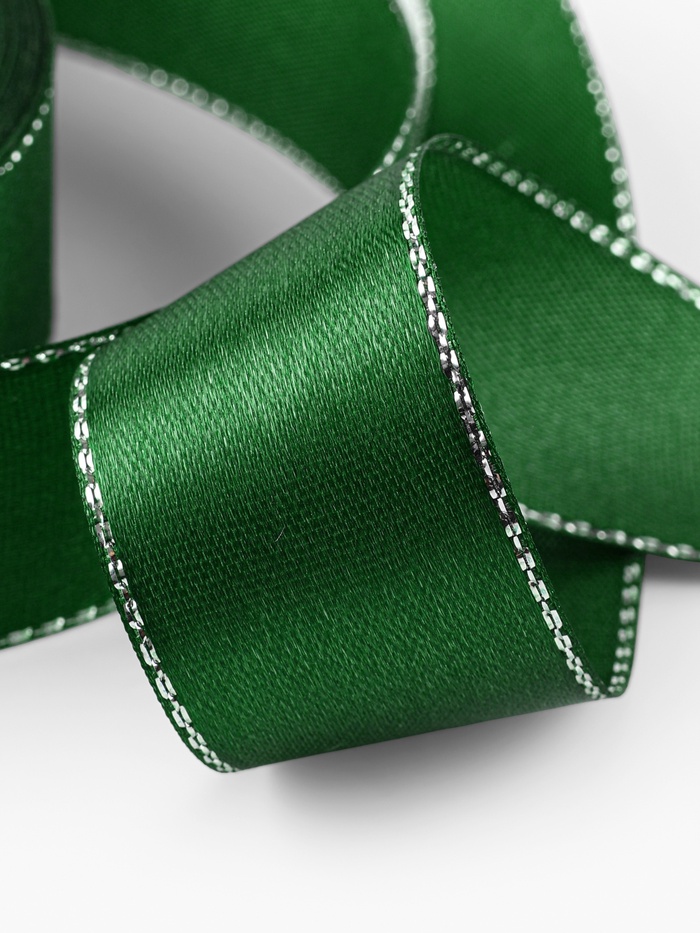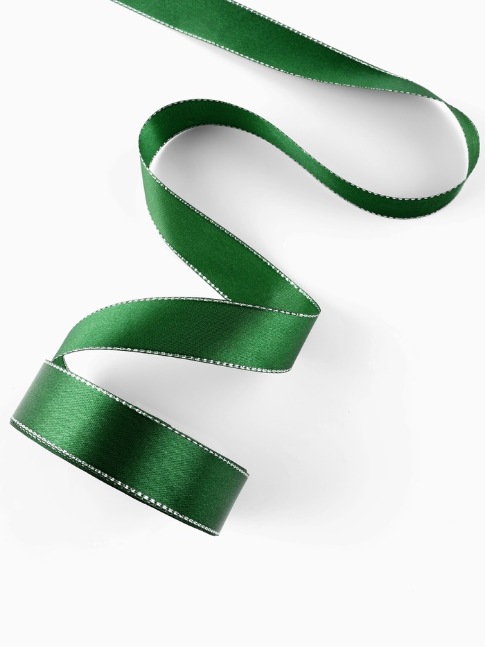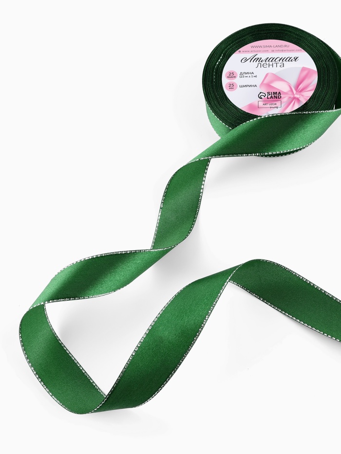Лента атласная, с серебряным люрексом, 25 мм, 23±1 м, зелёная №049