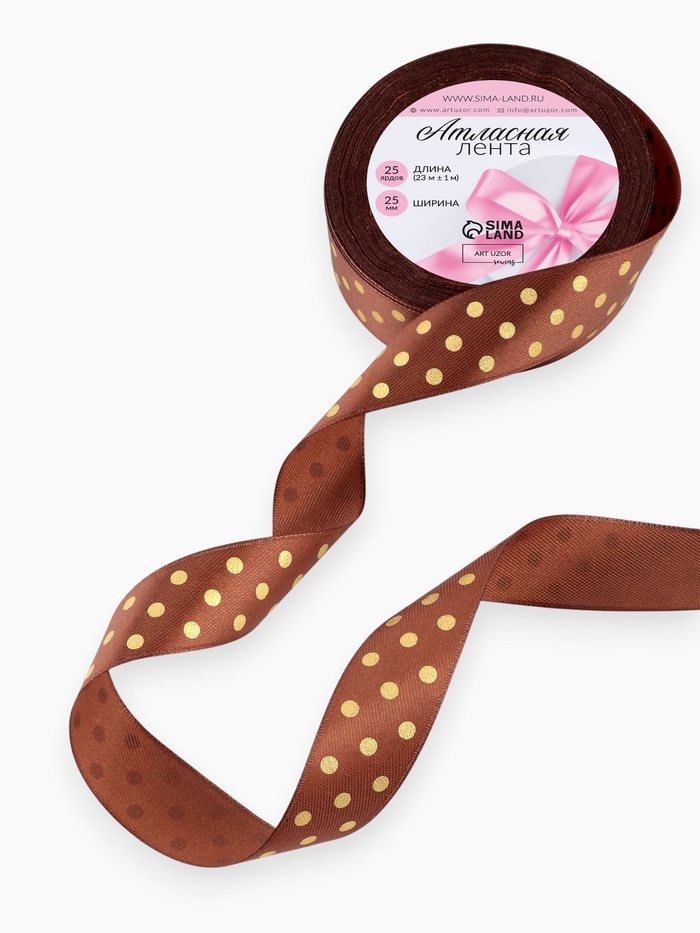 Лента атласная с тиснением «Горох», 25 мм, 23±1 м, коричневая №32