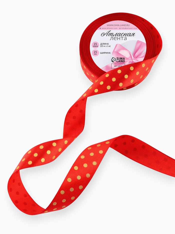 Лента атласная с тиснением «Горох», 25 мм, 23±1 м, красная №26