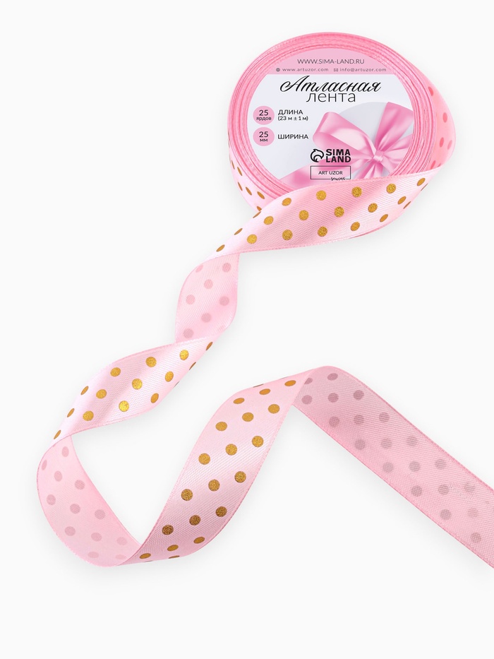 Лента атласная с тиснением «Горох», 25 мм, 23±1 м, розовая №04