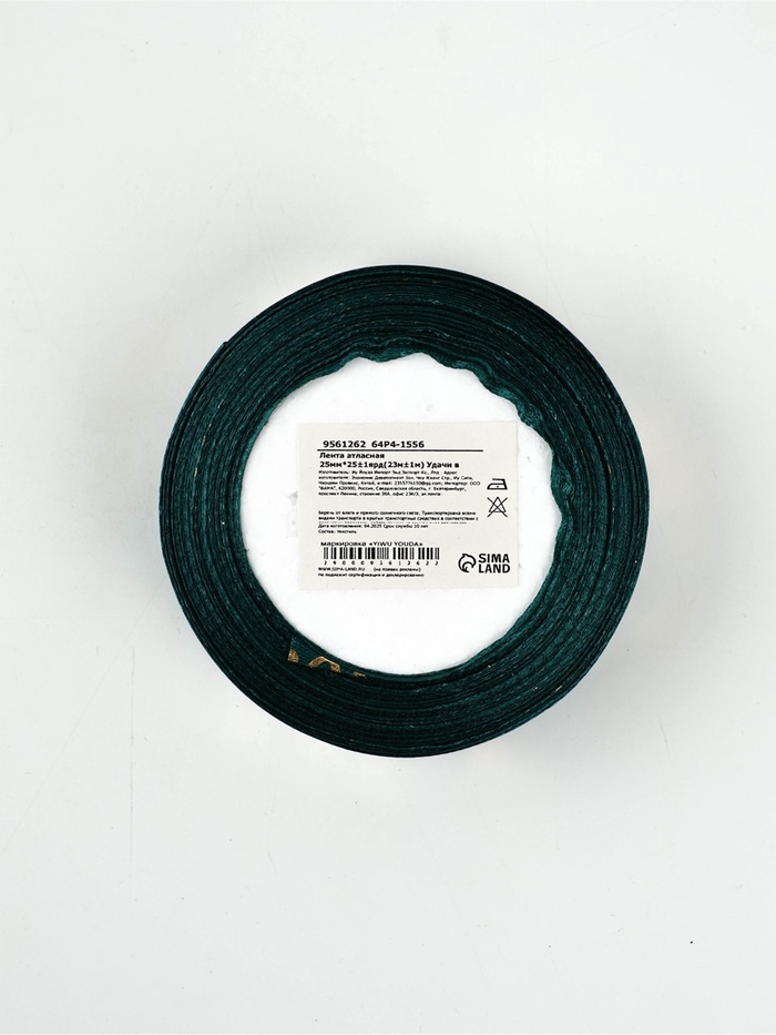 Лента атласная с тиснением «Удачи в Новом году!», 25 мм, 23±1 м, зелёная