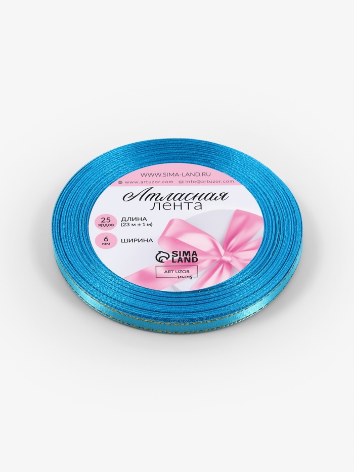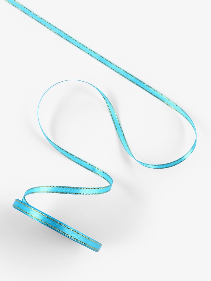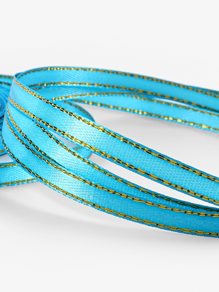 Эта уникальная атласная лента с золотым отливом подходит для множества декоративных проектов. Лента шириной 6 мм имеет яркий голубой тон, который элегантно контрастирует с блеском золотого люрекса. Такой аксессуар добавит утонченности и изысканности вашим творческим замыслам и праздникам.