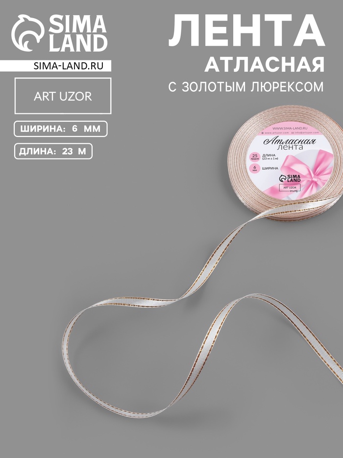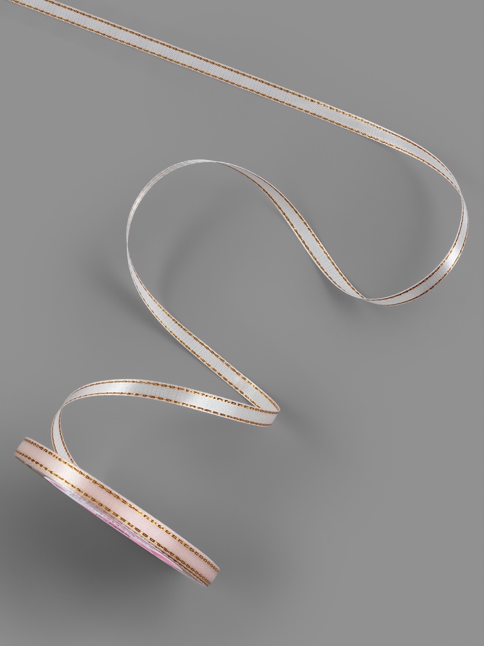 Сочетание мягкого лилового цвета с белыми вставками и мерцающего золотого люрекса придаёт ленте особый шарм. Ширина 6 мм делает её универсальной: она легко помещается в мелкие детали дизайна или становится ярким акцентом в больших композициях. Длина 23 метра позволяет воплотить масштабные проекты без необходимости соединять отрезки.