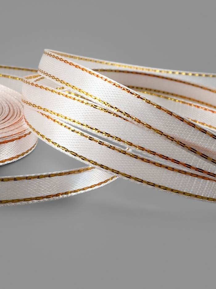 Откройте для себя изысканный аксессуар, который добавит нотку роскоши в любое изделие — атласную ленту с золотым люрексом. Этот материал станет идеальным выбором для декора одежды, аксессуаров, упаковки подарков и создания элементов интерьера.