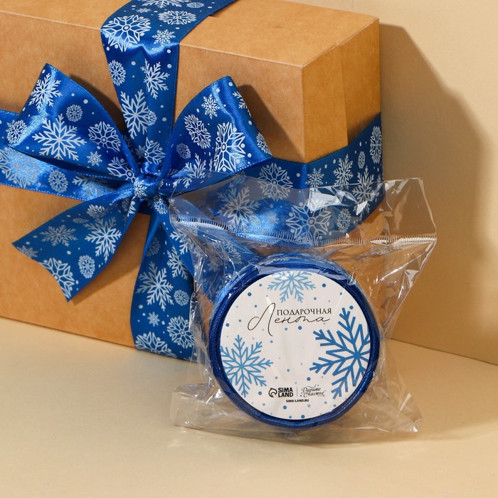 Лента атласная «Снежный вальс», синяя , 4 см × 5 м