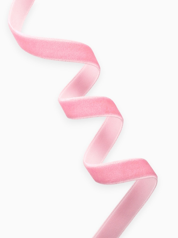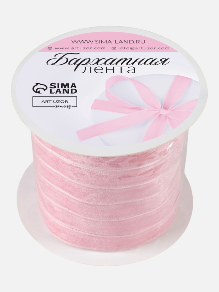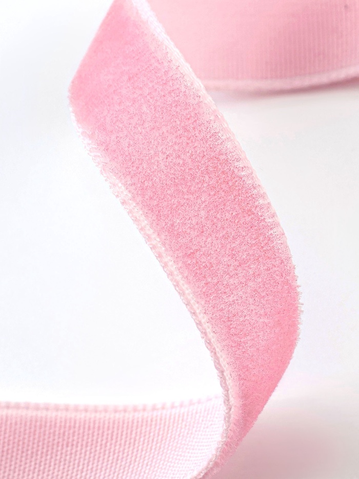 - Однотонный дизайн: Ровный розовый цвет без рисунка делает ленту универсальной. Она сочетается с другими оттенками, не перегружает композицию и подчёркивает структуру бархата.