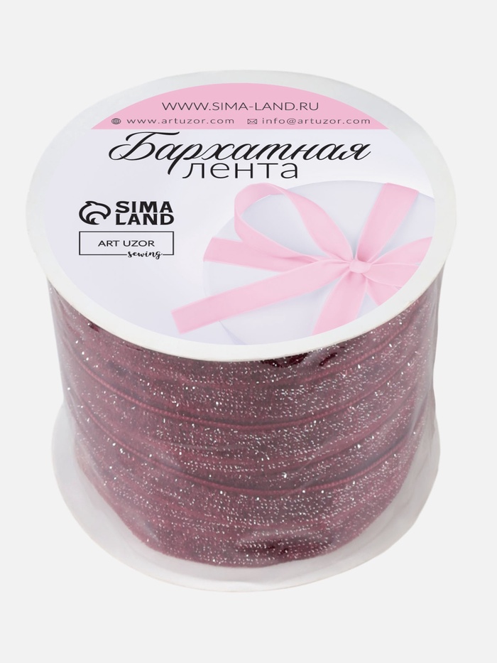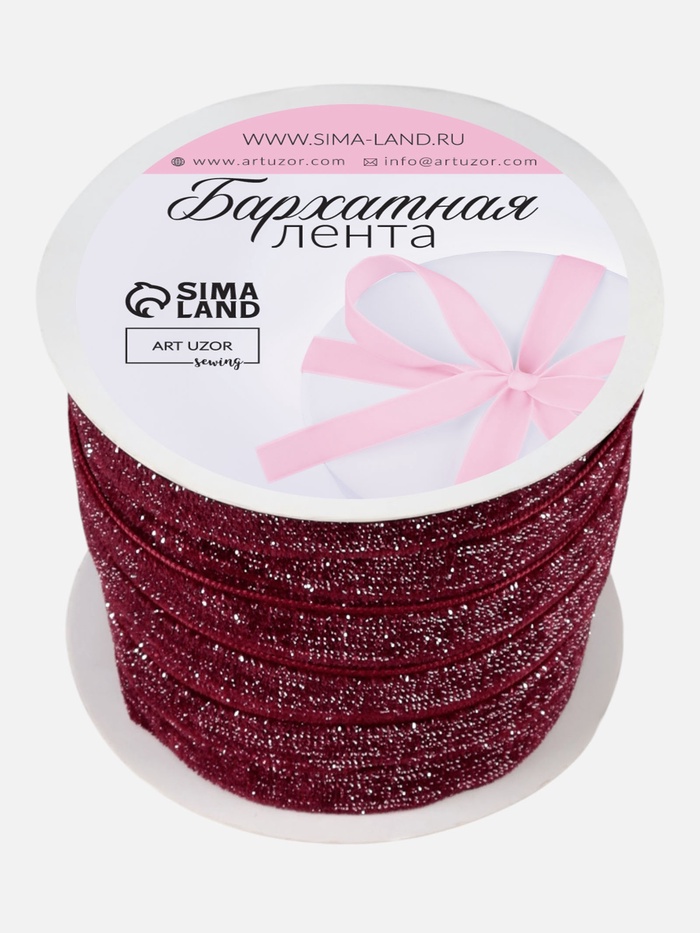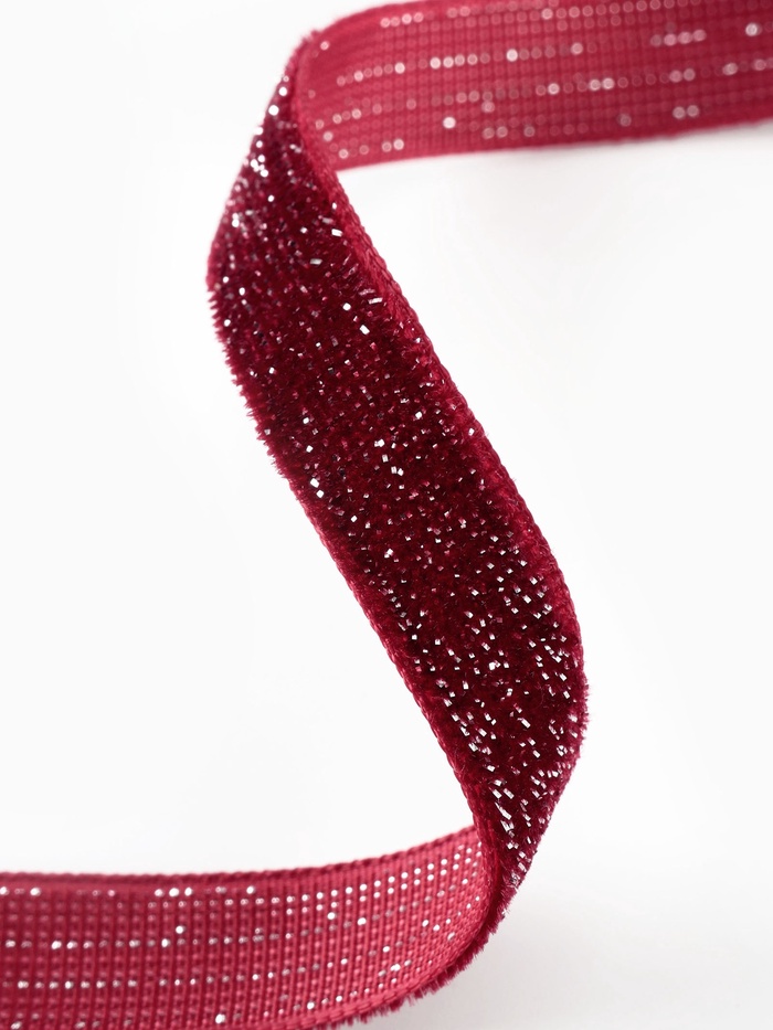 Эта бархатная лента с серебряным люрексом придаёт творческим проектам холодное сияние. Сочетание глубокого бордового бархата и серебристых нитей создаёт контрастный переливающийся эффект для выразительного декора.