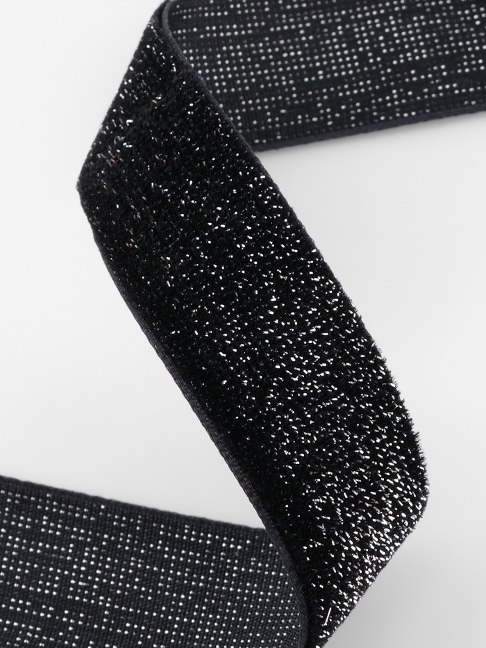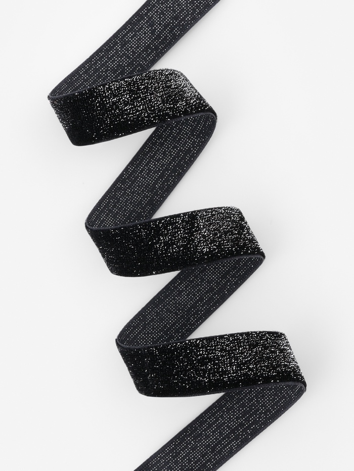 Бархатная лента с серебряным люрексом в глубоком черном цвете — идеальное решение для создания элегантных аксессуаров и праздничного декора. Сочетание насыщенного черного оттенка с мерцающими серебристыми нитями придает изделиям сдержанный блеск и утонченность. Материал приятен на ощупь и сохраняет форму, что делает его незаменимым в шитье и рукоделии.