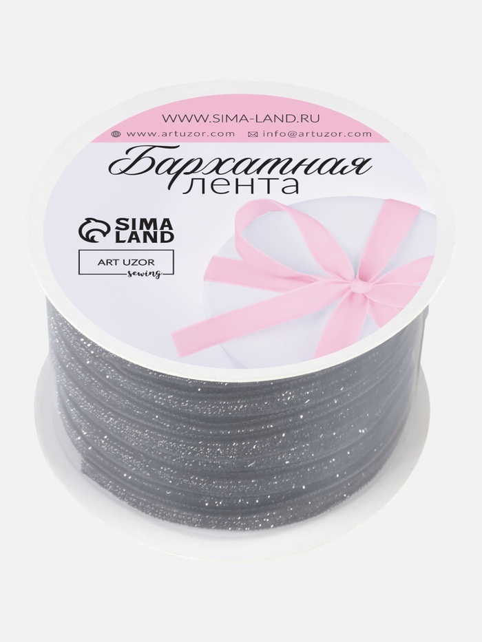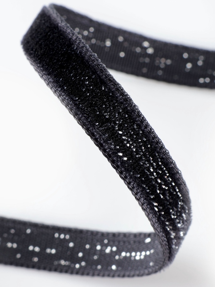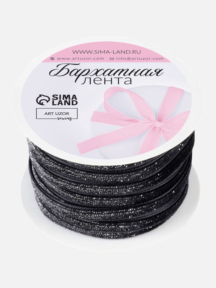 Узкая бархатная лента с серебряной нитью добавляет изысканный акцент в творческие проекты. Глубокий черный цвет с мерцающим люрексом создает элегантный контраст для декора и рукоделия.